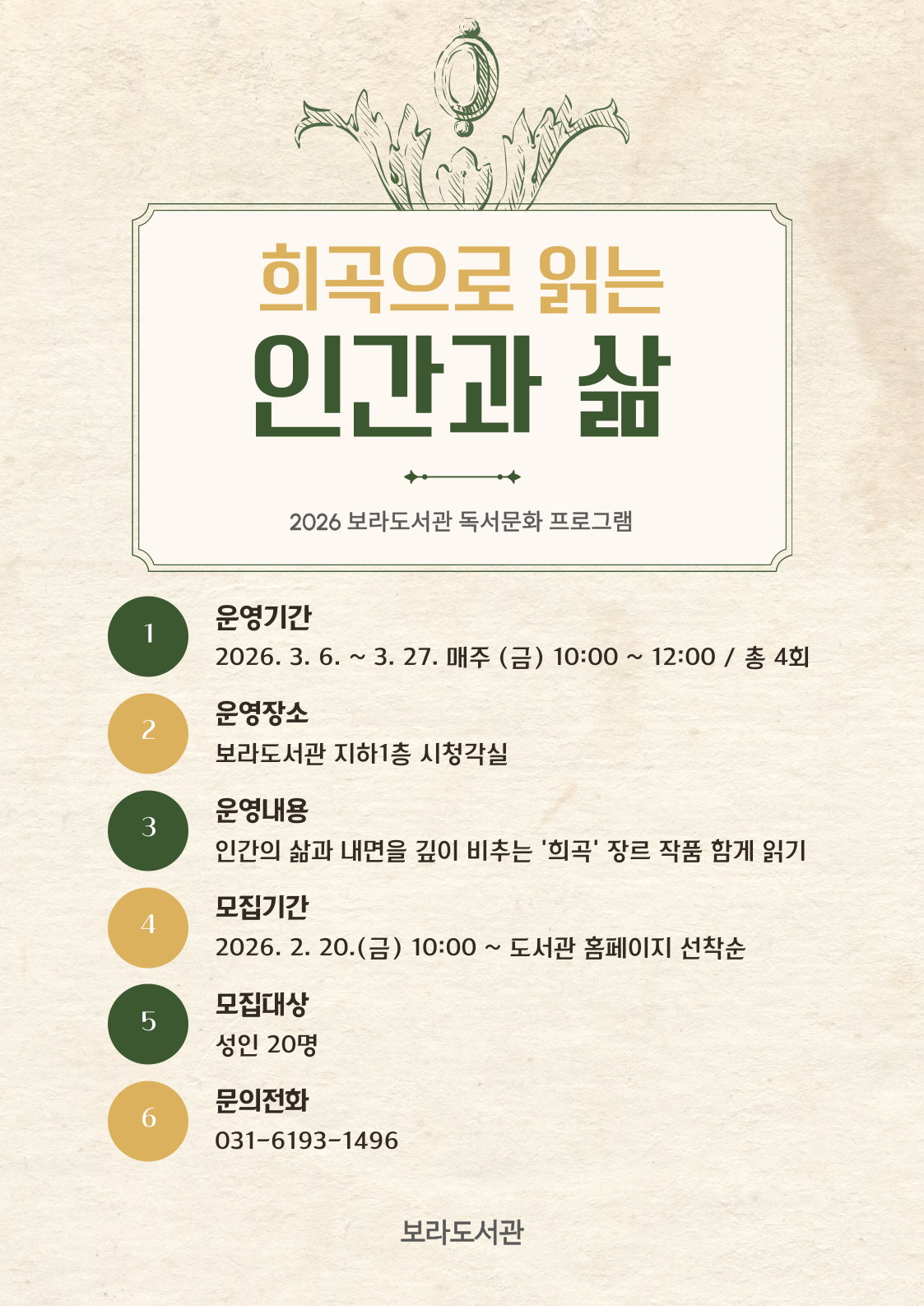 [보라] 독서문화 프로그램 <희곡으로 읽는 인간과 삶>