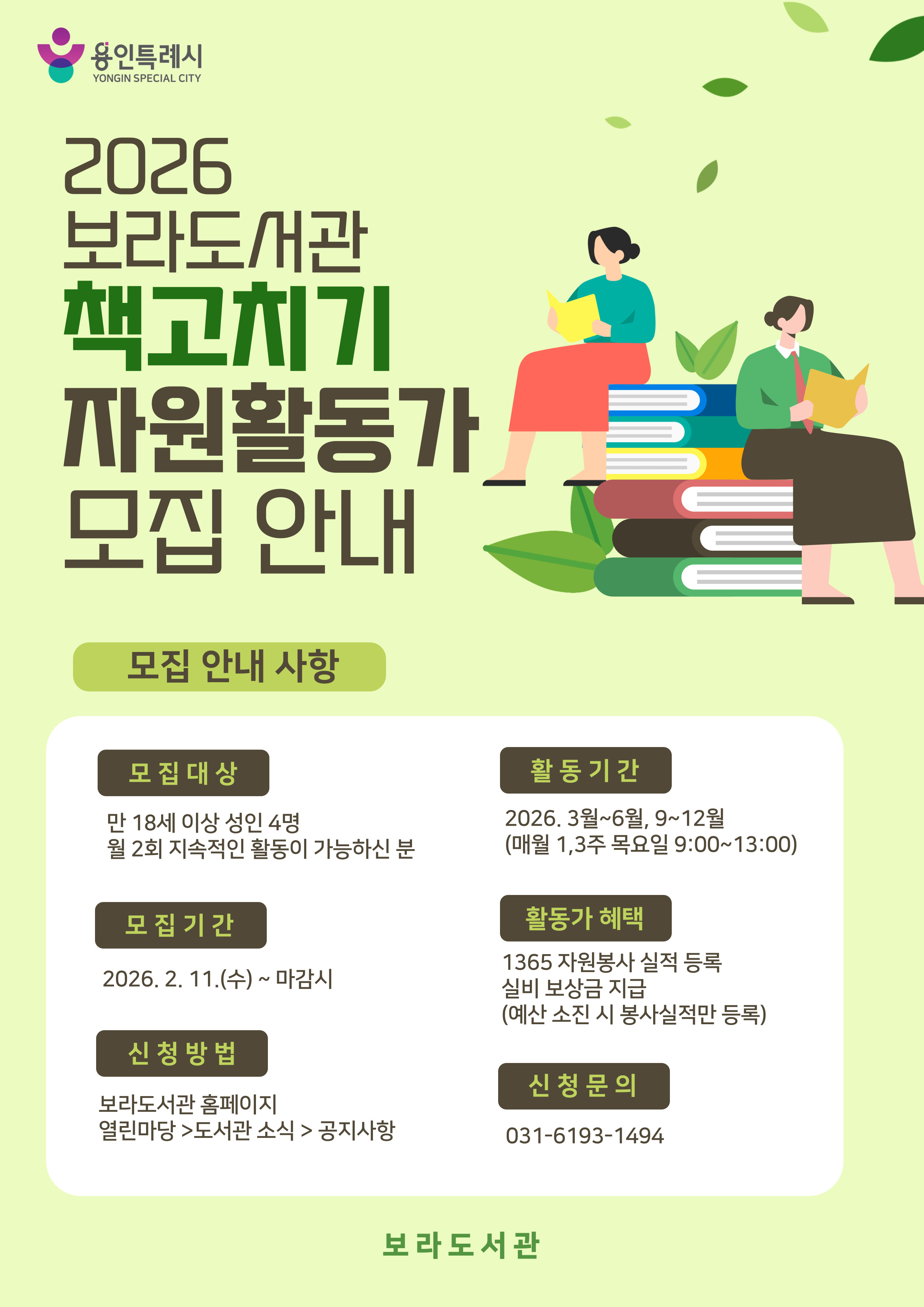 • 보라도서관 책고치기 자원봉사자를 모집합니다.