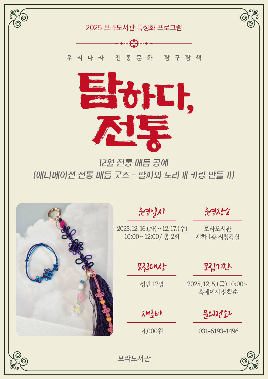 [보라] 특성화 프로그램 <탐하다, 전통> - 12월 전통 매듭 공예(성인)