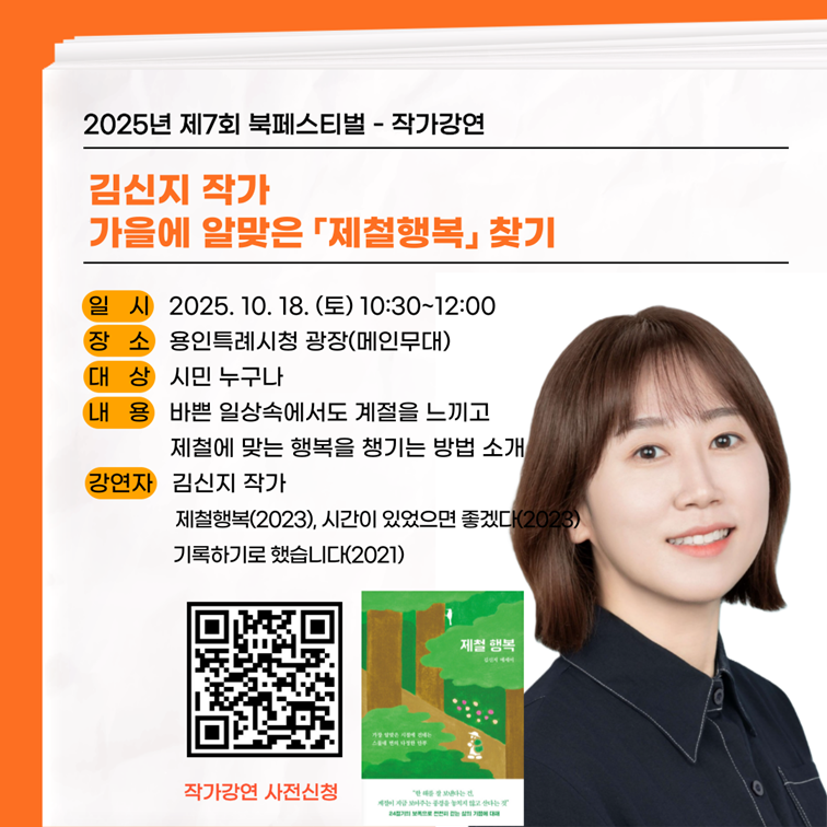 김신지 작가강연 - 가을에 알맞은 '제철행복' 찾기 - 대상 : 관심있는 시민 누구나(사전접수 50명)