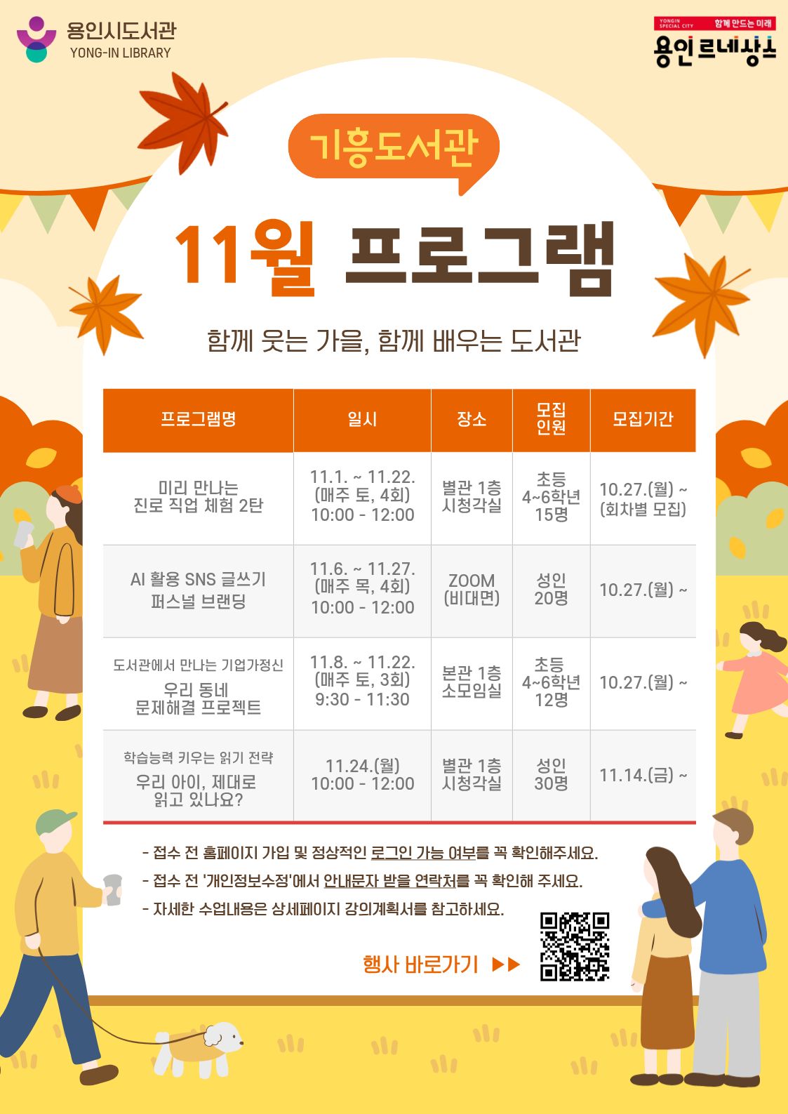 기흥도서관 11월 독서문화 프로그램 운영 안내