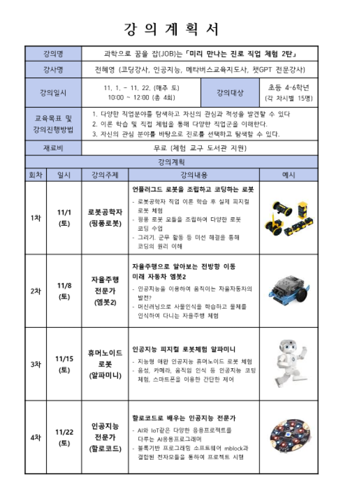 기흥 [기흥] 11월 특성화 프로그램 「미리 만나는 진로 직업 체험 2탄」 - 휴머노이드 로봇 (11/15)