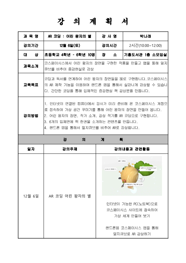 기흥 [기흥] 12월 재능기부 프로그램 「코딩과 함께하는 도서관 여행 2탄 - AR 코딩 : 어린왕자의 별」