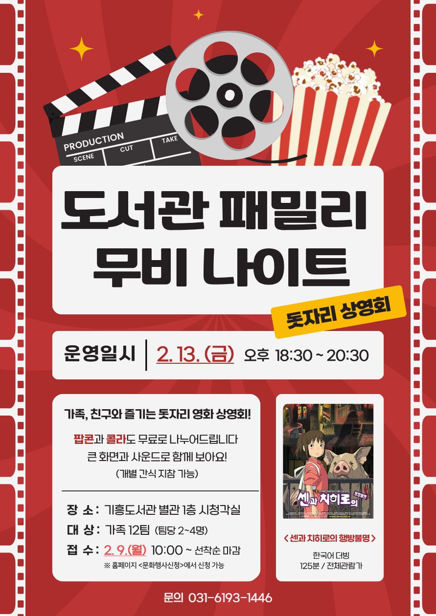 기흥 2월 독서문화 프로그램 「도서관에서 즐기는 패밀리 무비 나이트」