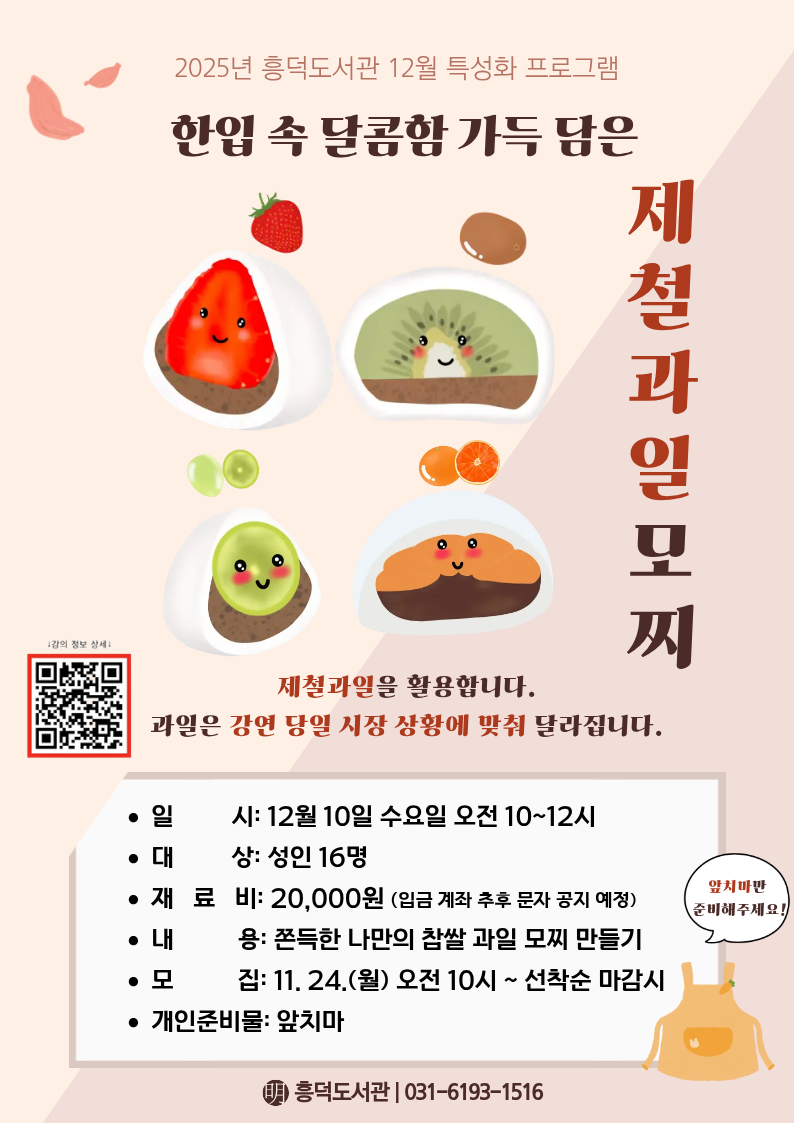 [흥덕_대면] 12월 특성화 프로그램 「한입 속 달콤함 가득 담은 제철 과일 모찌 」 (12/10, 10:00~12:00)