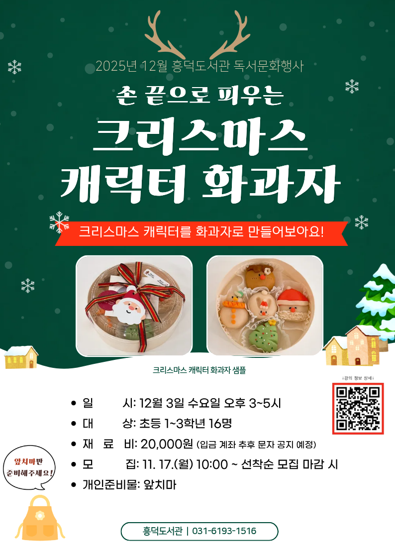 [흥덕_대면] 12월 독서문화행사 「손 끝으로 피우는 크리스마스 캐릭터 화과자」 (12/3, 수, 15:00~17:00)