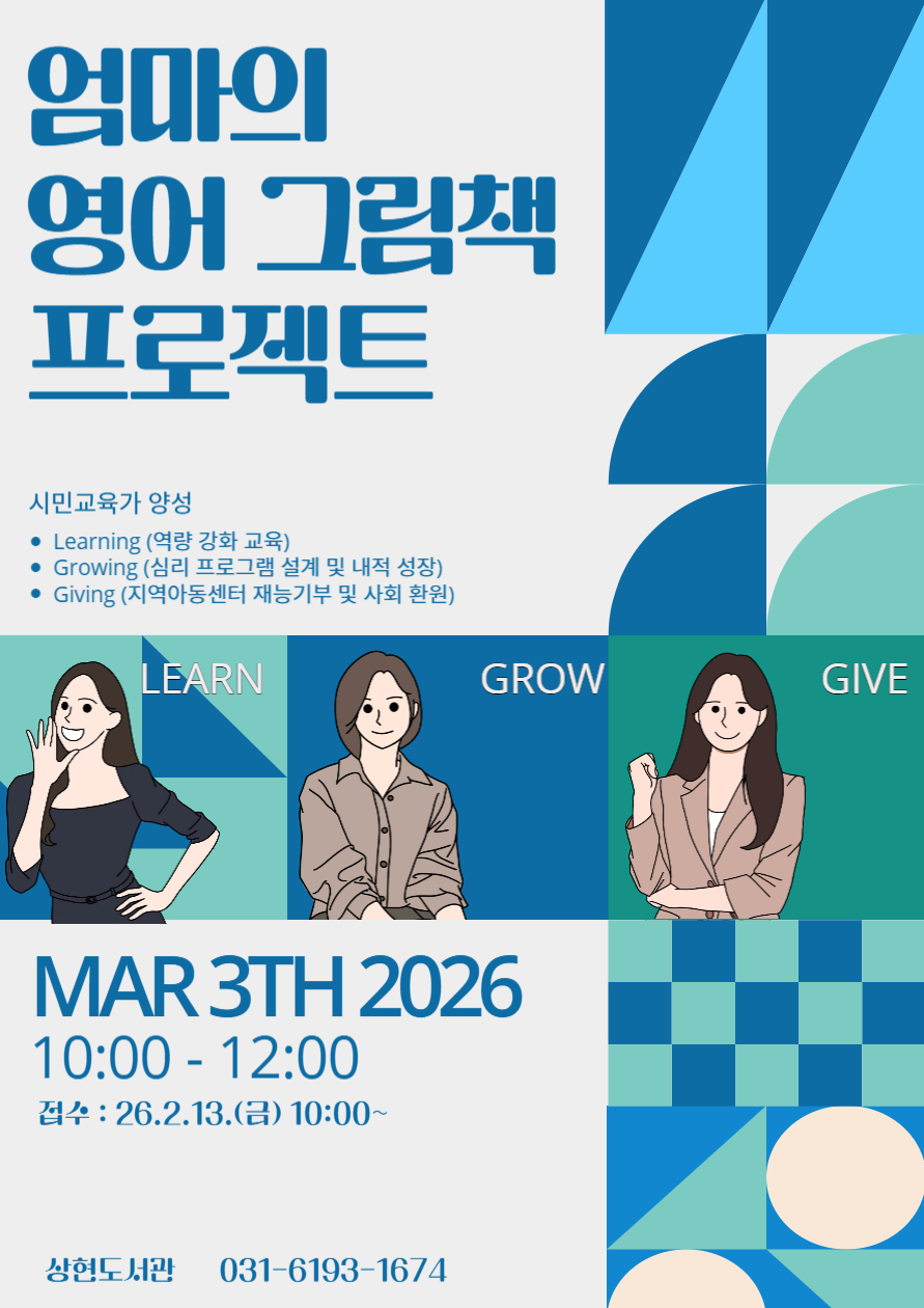 용인특례시(시장 이상일) 상현도서관은 오는 13일부터 선착순으로 ‘엄마의 영어 그림책 프로젝트’ 참여자 20명을 모집한다.