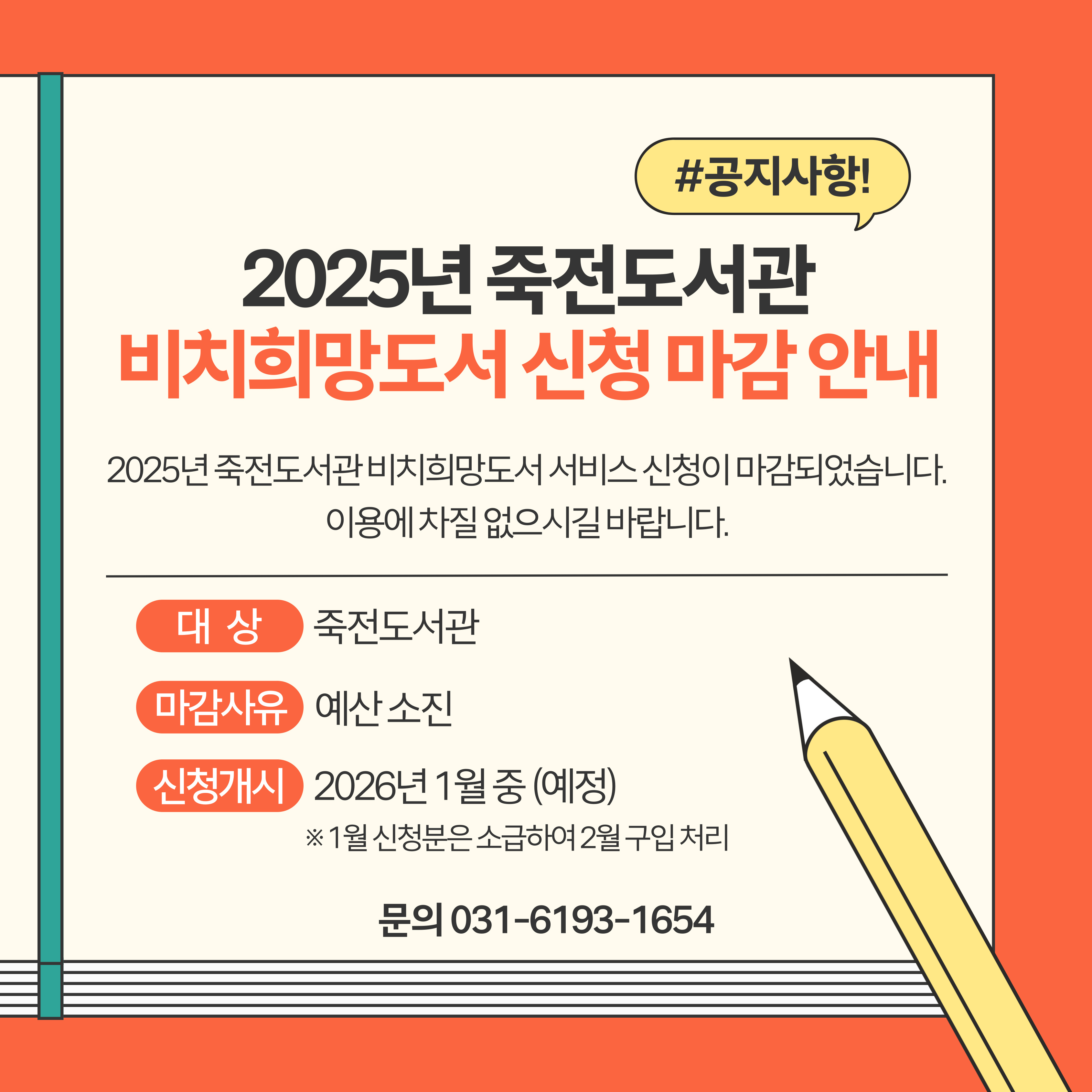 2025년 죽전도서관 비치희망도서 서비스 마감 안내