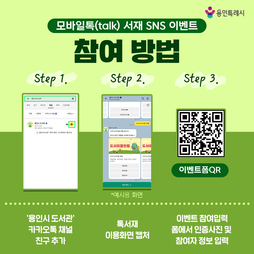 용인시 도서관 Talk! Talk! 톡 서재 SNS 이벤트 진행 안내🎉