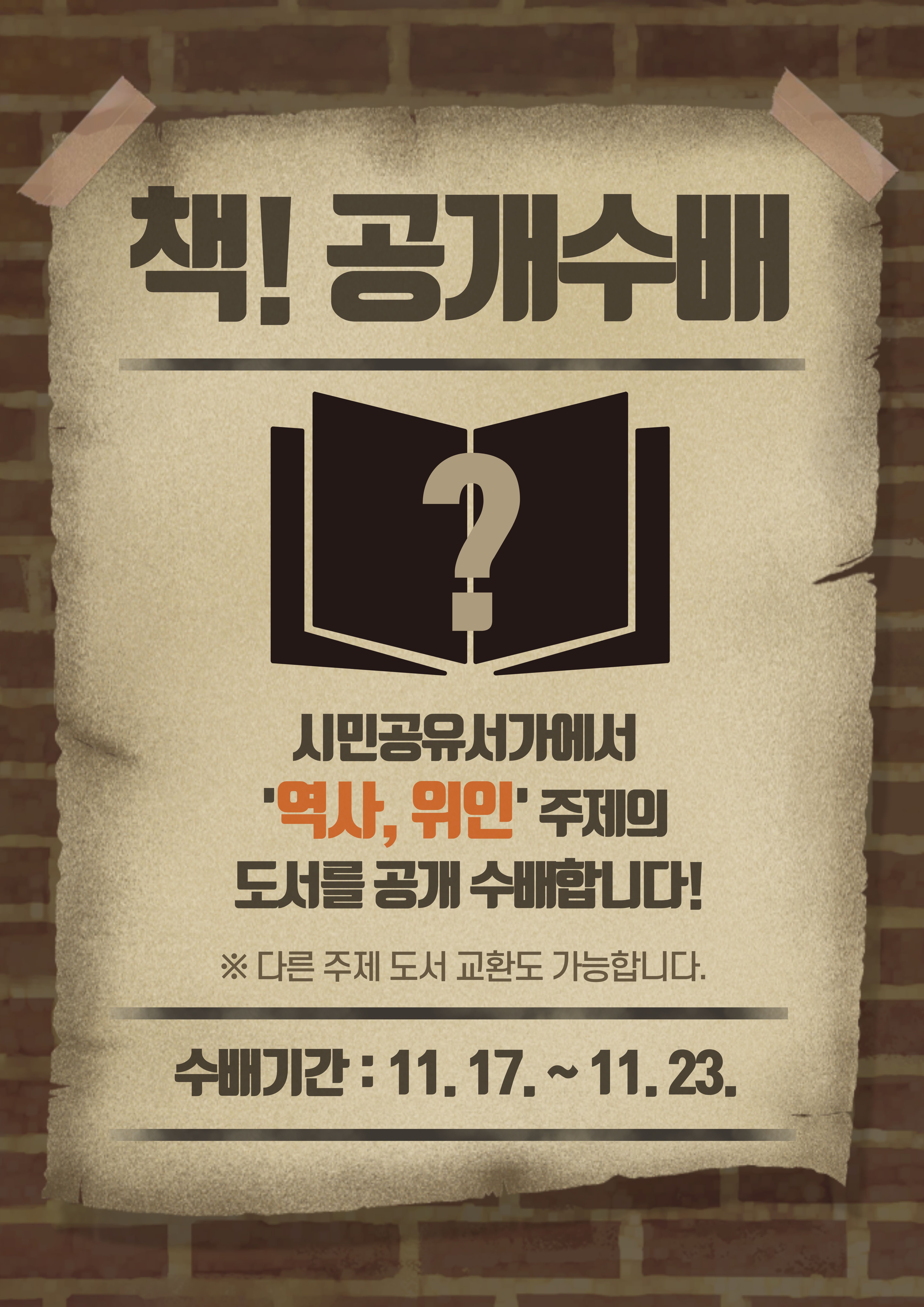 남사도서관 시민공유서가 팝업존 「책! 공개수배」 운영 안내 (11월 3주차)