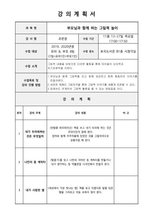 [11월 문화행사] 부모님과 함께하는 그림책 놀이(19,20년생)