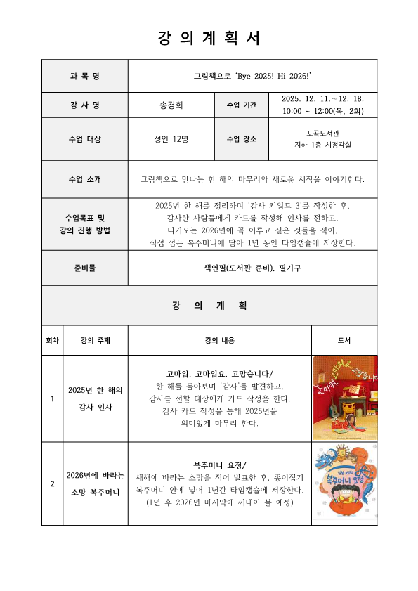 [12월 문화행사] 그림책으로 Bye 2025! Hi 2026!