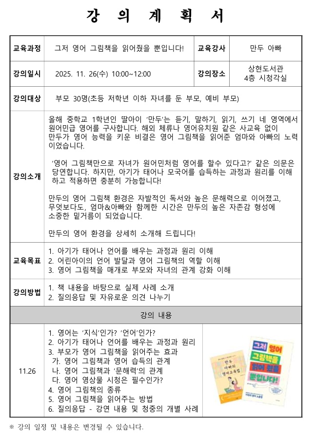 상현 [상현] 재능기부 프로그램 <그저 영어 그림책을 읽어줬을 뿐입니다> 신청