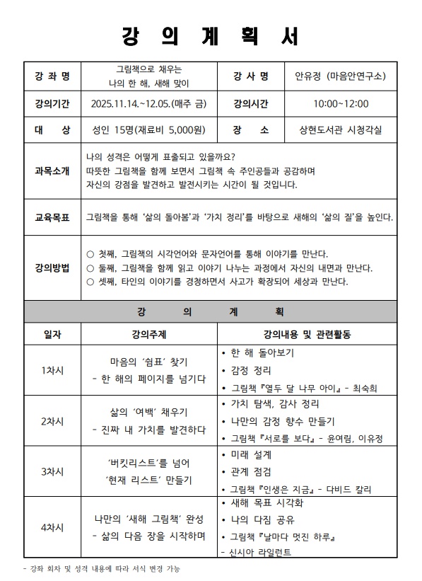 [상현] 재능기부 프로그램 <그림책으로 채우는 나의 한 해 새해 맞이> 신청