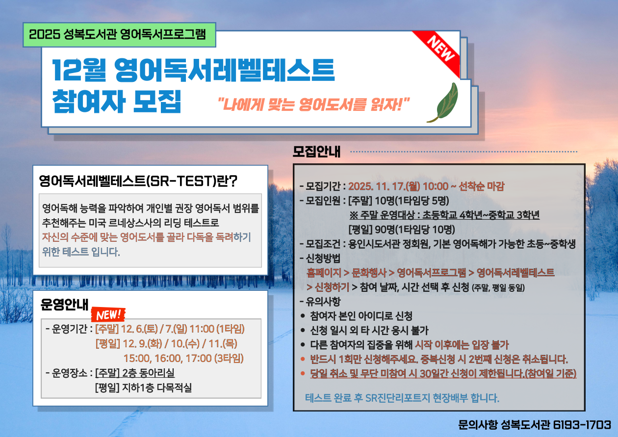 [성복] 12월 영어독서레벨테스트(SR-TEST) 참여자 모집