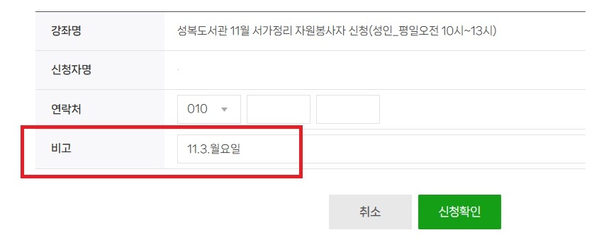 성복 성복도서관 11월 서가정리 자원봉사자 신청(성인_평일오전 10시~13시)