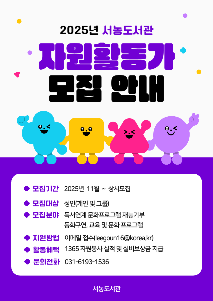 2025년 서농도서관 재능기부 자원활동가 모집