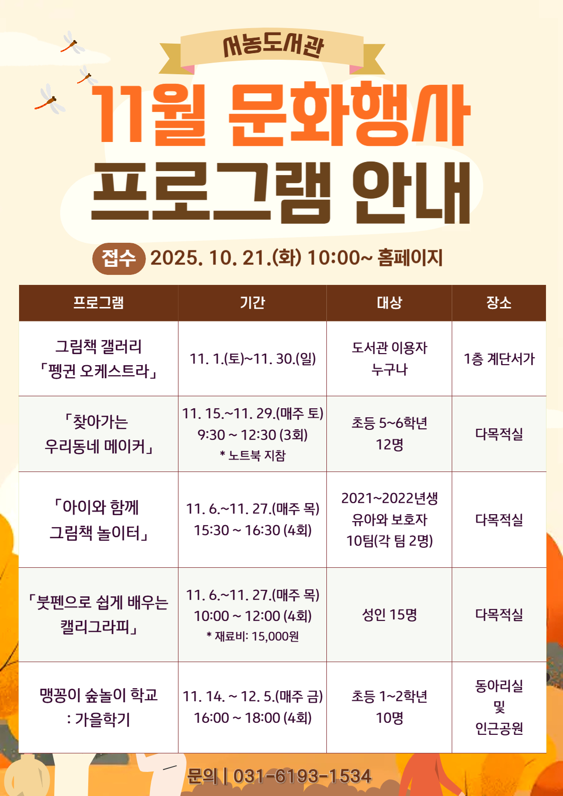 기흥도서관 11월 독서문화 프로그램 운영 안내