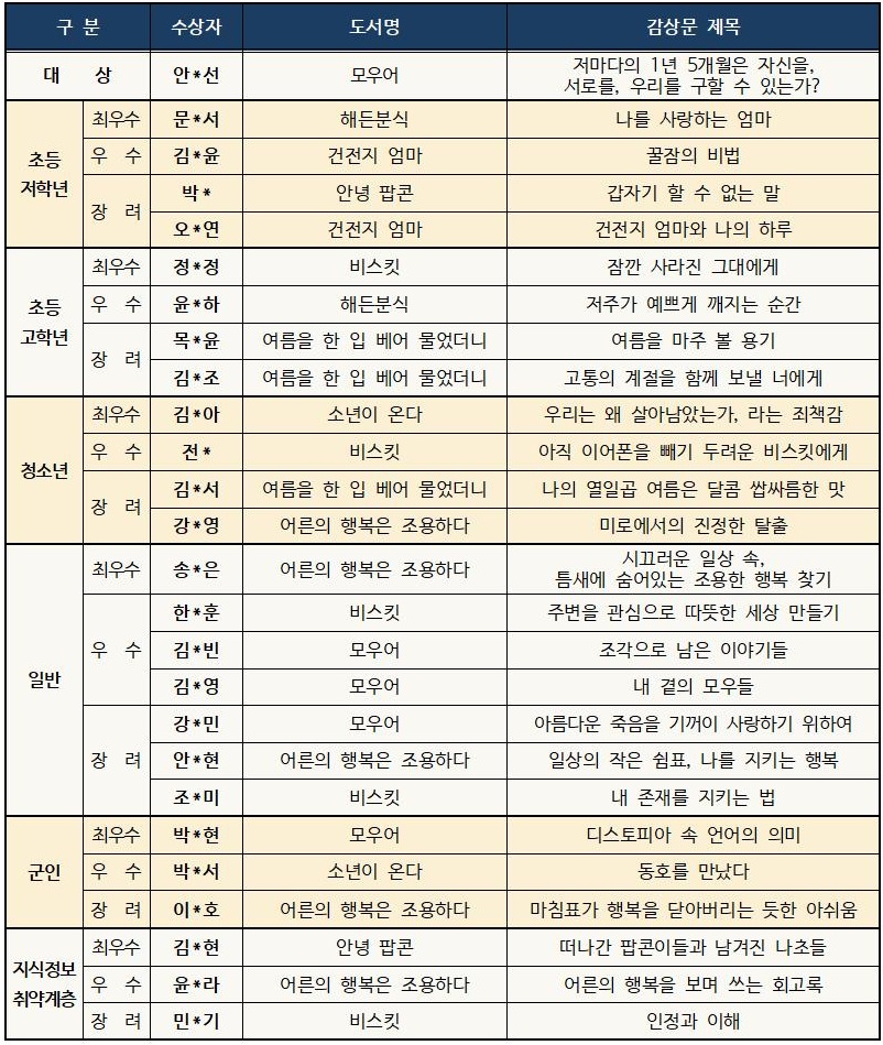 ○ 수상자는 시상식 참석 및 독후감 발표에 협조하여야 함
